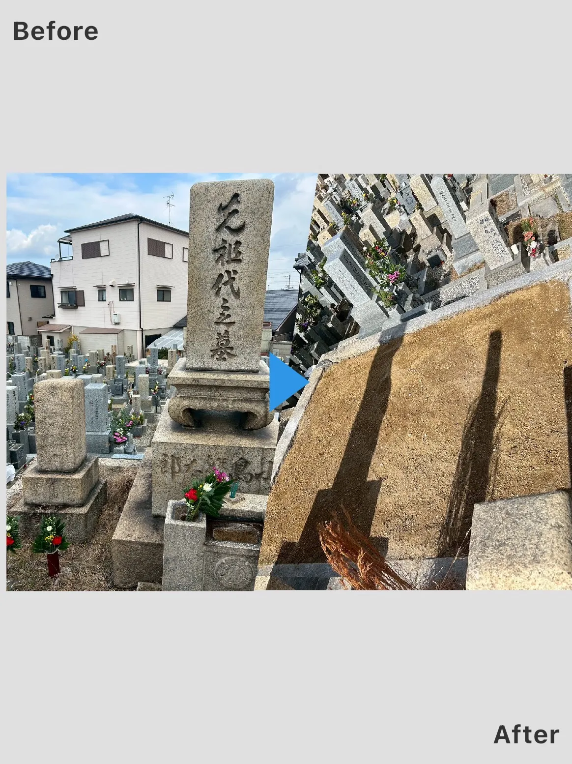 前日から引き続き、和泉市の忠岡町共有墓地にてお墓じまいの作業でした。